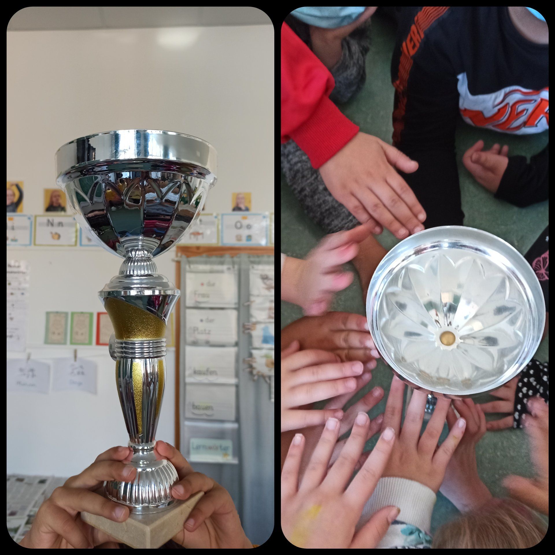 Juhu, wir haben den Leisepokal! Jede Klasse hat eine Leisemaus. Diese darf dann ausgemalt werden, wenn man es schafft ganz leise in die Klasse zu gehen. Ist die Maus ganz ausgemalt wird sie bei Herrn Weinhold abgegeben. Durch unsere Lautsprecheranlage wird die Klasse genannt, die den Pokal erhält und Herr Weinhold kommt und überreicht den Pokal. Wir haben uns sehr darüber gefreut!hier alles machen.