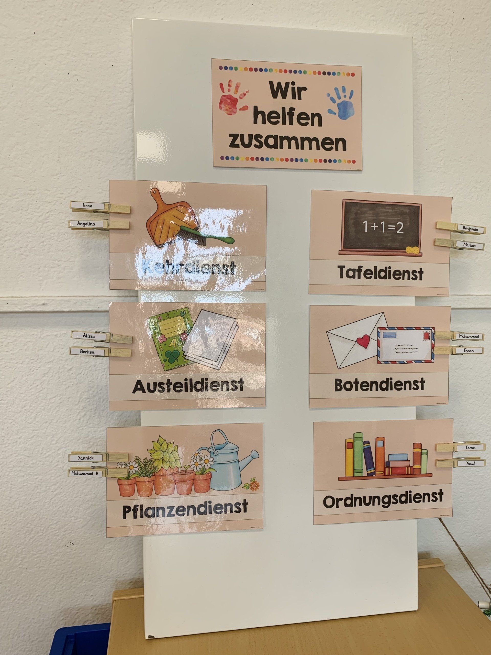Die Giraffen arbeiten schon selbständig mit den Hausaufgaben- und Wochenplänen. Die Kinder sehen so genau, welche Aufgaben zu erledigen sind und was in der Woche noch ansteht.