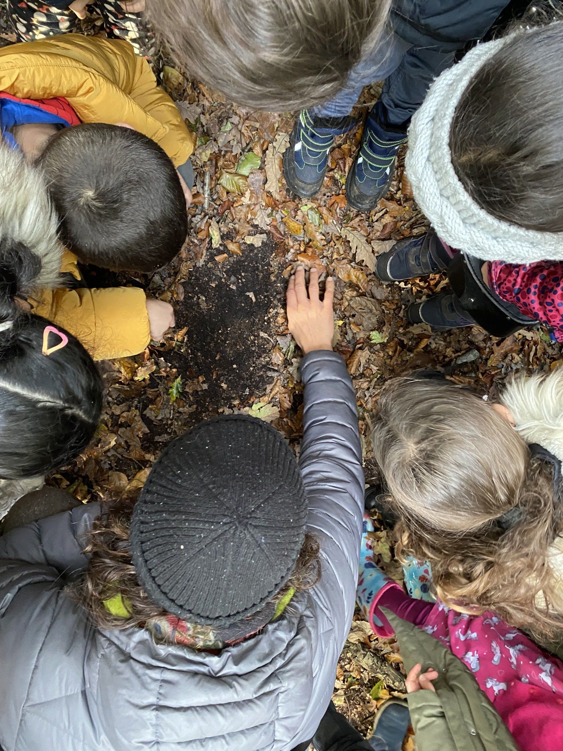 Was für ein Glück! An einem wunderschönen Sonnentag durften wir zur Station Natur und Umwelt. Wir haben uns zunächst die Waldtiere auf Bildern angeschaut und sind dann in den Wald gelaufen. Nachdem wir die Bäume begrüßt haben, haben wir auch schon die ersten Früchte gefunden: Echte Haselnüsse frisch vom Baum!